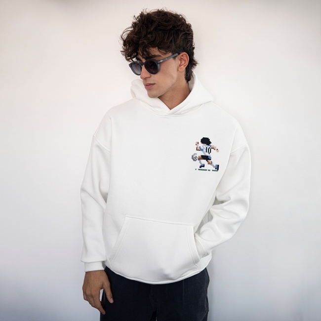 طراحی این هودی با الهام از اسطوره فراموشنشدنی فوتبال، دیهگو مارادونا، و اجرای گلدوزی پیکسلی دقیق روی سینه، حس نوستالژی را با خلاقیت مدرن پیوند میدهد. نتیجه، محصولی است که هم خاص است و هم کاربردی؛ چیزی که در DNA برند ITIZ جایگاه ویژهای دارد.