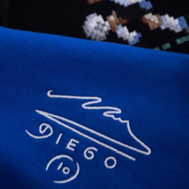 جزئیات گلدوزی شده، نقطه قوت این محصول هستند. تصویر مارادونا در حالت پیکسلی، نهتنها ادای دینی به یکی از بزرگترین اسطورههای فوتبال جهان است، بلکه بازی هوشمندانهای با مفهوم دیجیتال و پیکسل در طراحی پوشاک به شمار میآید. این گلدوزی با دقت بالا و در بهترین کیفیت اجرا شده تا حتی پس از شستوشوهای متعدد، جلوه خود را از دست ندهد.